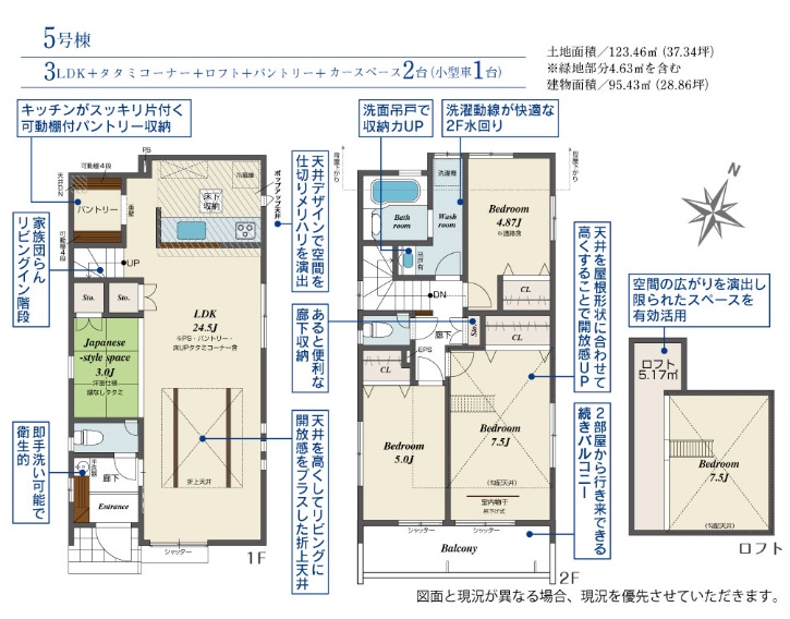 | 建物面積 | 95.43m² | 計測方式 | 壁芯 | ||